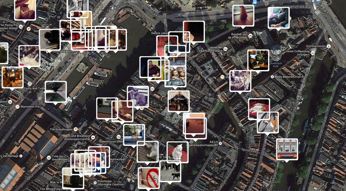 Maar katten uploaden toch niet zelf hun foto? En hoe komt hij aan al die foto's dan? Simpel.. de kattenfoto's worden van verschillende website gehaald zoals Instagram en Flickr. Iedereen die daar een foto opgezet heeft met #cat is de pineut. Als je dan ook nog je plaatsbepaling aan hebt staan is het daarna super makkelijk om de kat & de locatie aan elkaar te verbinden.