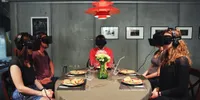 Een eettafel met meerdere stoelen eromheen staat in het midden van een lege ruimte. De tafel is gedekt voor vijf personen en op elk bord ligt een speciale bril en een koptelefoon. Je gaat zitten, zet de bril en koptelefoon op en onmiddelijk beland je in een nieuw verhaal. En jij maakt er onderdeel van uit.