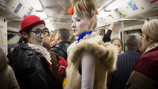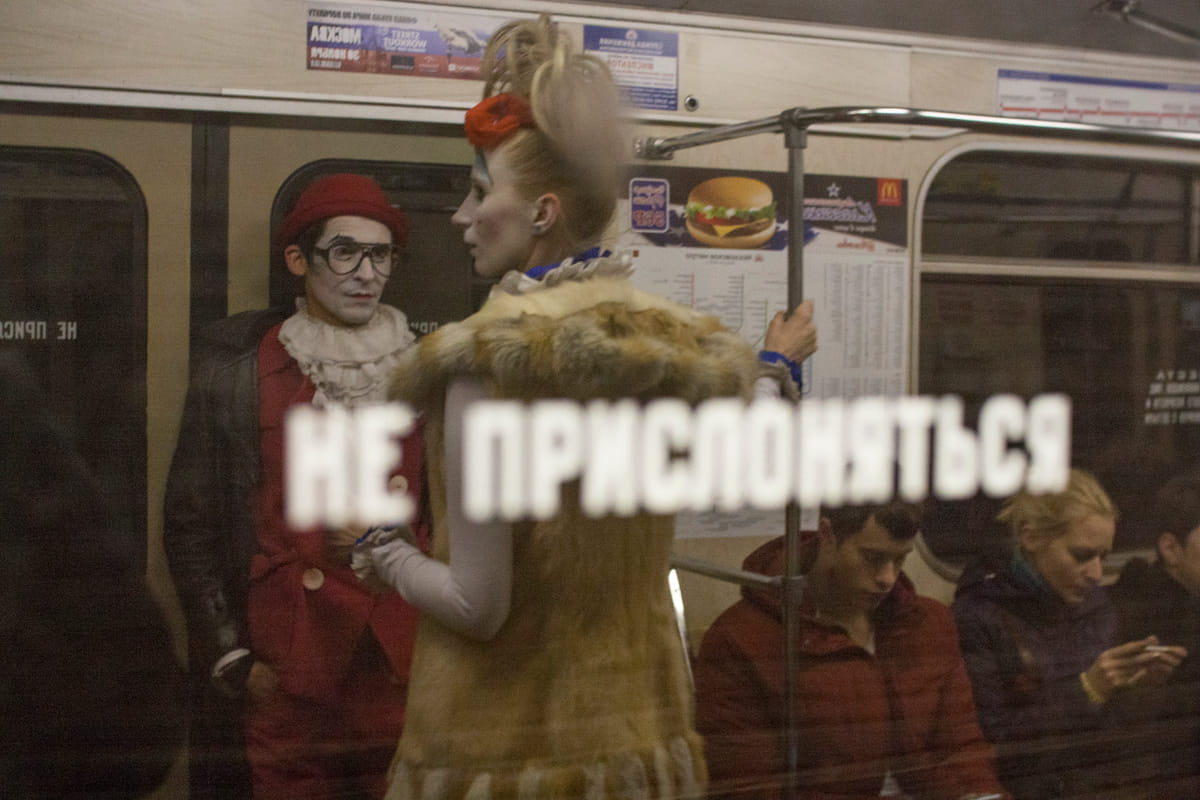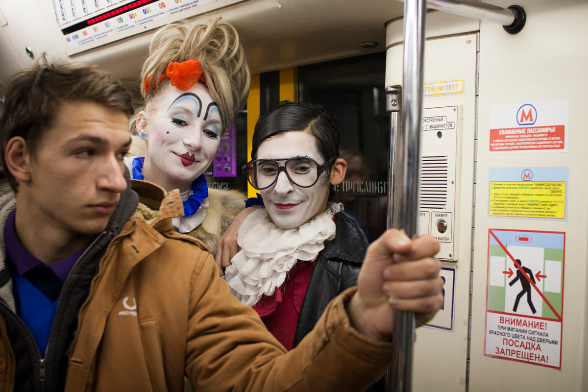 Normaal gesproken vinden hun acties op straat plaats, maar daarvoor is het nu te koud. Gelukkig biedt het verwarmde metronetwerk van Moskou uitkomst. Ekaterina legt uit dat hun optredens absoluut geen politieke statements zijn. Make the world a happier together was de naam van hun vorige actie. “Dat is wat we willen bereiken. Niemand betaalt ons hiervoor en we maken geen reclame”, zegt Ekaterina. Pavel knikt instemmend en haalt iets uit zijn zak. “Vandaag gaan we voor het eerst de Onderscheiding voor Aardigheid uitreiken. Daarmee willen we aardige mensen bedanken.” Hij houdt een blauw speldje omhoog. “Voor veel clowns is clown zijn slechts werk, maar voor ons niet”, vervolgt Pavel. “Clown zijn zit in ons karakter. We moeten eens per week die innerlijke clown naar buiten laten en daarom doen we dit. Wij gebruiken geen alcohol of drugs, we lachen!”