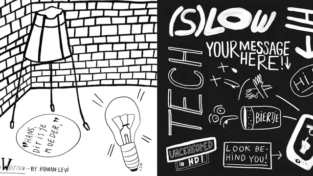 Drie filmmakers en één grafisch ontwerper bedachten zelf waar deze producten voor dienen en baseerden hier hun advertenties op. De grafische reclame voor Roman Levi zie je hierboven. Weten wat je echt met deze producten kunt doen? Dorst interviewt de productontwerpers op de DDW.