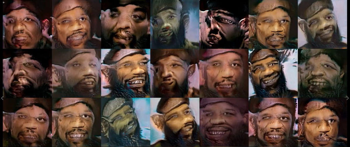 We verzamelden in totaal zo’n 500 foto’s van Willie online, maar dit bleek bij lange na niet genoeg materiaal om de styleGAN te trainen. Het leverde wel wat visueel interessante resultaten op, maar niet iets dat op Willie leek (of op enig ander mens).