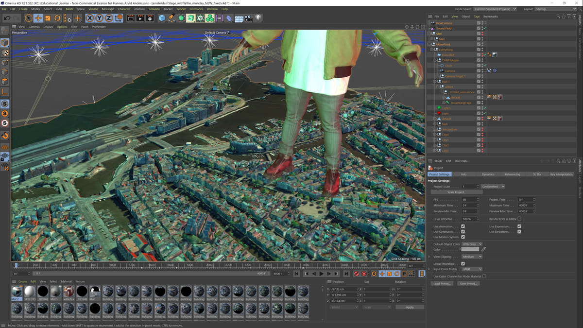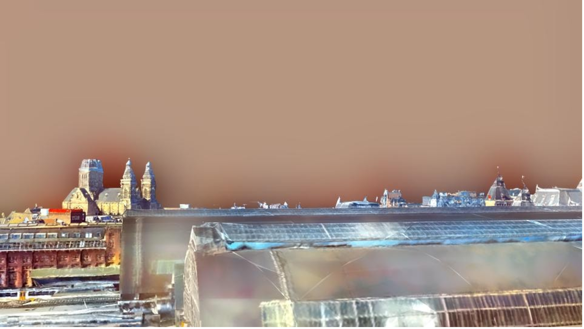 De overgang scenes van point-cloud naar fotorealistische stad maakten we in Unity. Hier hebben we diverse lagen geanimeerd en in elkaar laten overgaan.