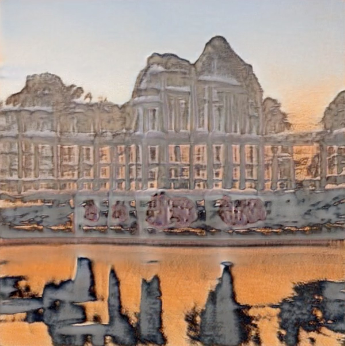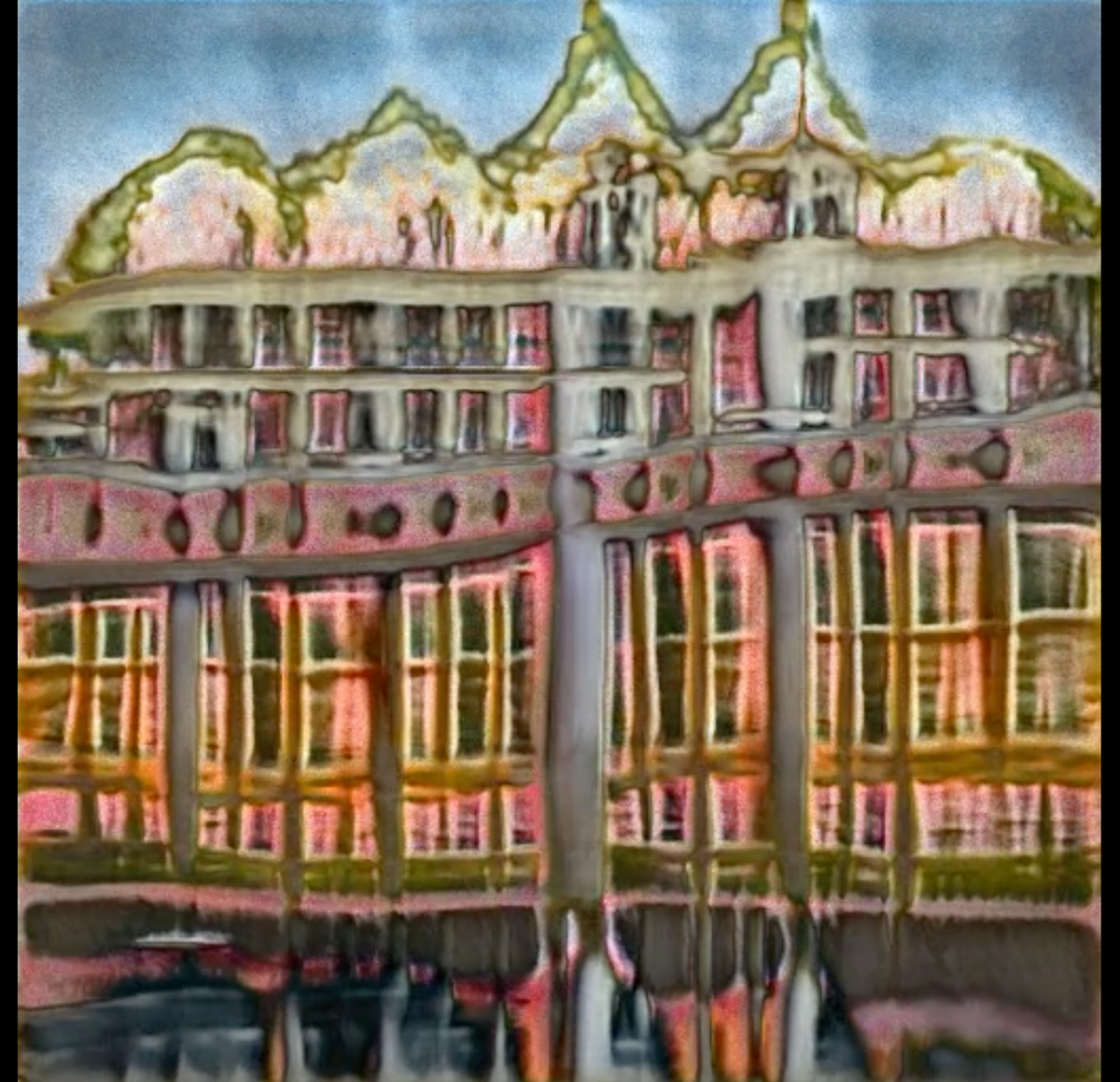 Dit keer was de beschikbaarheid van grote aantallen foto’s bepaald geen probleem. Een Google search op ‘Amsterdam’ geeft miljoenen van dit soort beelden, dus we konden snel een set samenstellen van circa 5000 foto’s om mee te trainen. We speelden met diverse settings en dit leverde interessante styleGANs op.