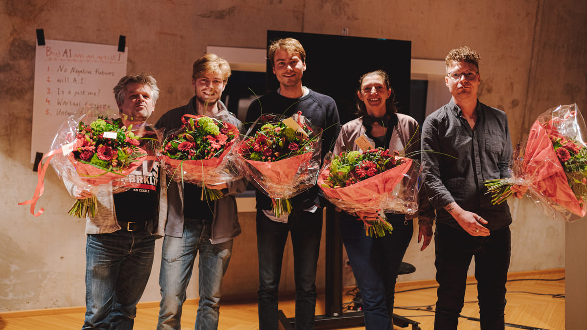 Het AI-nummer was tijdens de hackathon nog lang niet af, dus we gaven de teams gegenereerde sample-muziek van ons algoritme om tijdens de hackathon mee te werken. Na twee dagen keihard samenwerken met allerlei AI-tools als Runway, Processing and PoseNet presenteerden de teams hun concepten en prototypes aan de jury. Team Untapped Potential werd uitgeroepen tot winnaar.