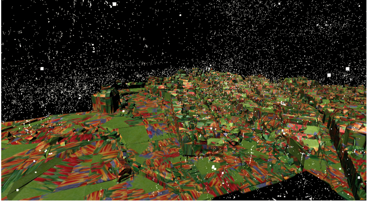 Het verhaal van de videoclip gaat over AI die continue leert en evolueert. We wilden hetzelfde doen met deze stadsomgeving: visualiseren dat een AI leert hoe een wereld eruit ziet. We kozen voor een point cloud als visuele metafoor omdat veel bestaande AI-toepassingen (bijv. zelfrijdende auto’s) een point cloud-wereld gebruiken om te navigeren.