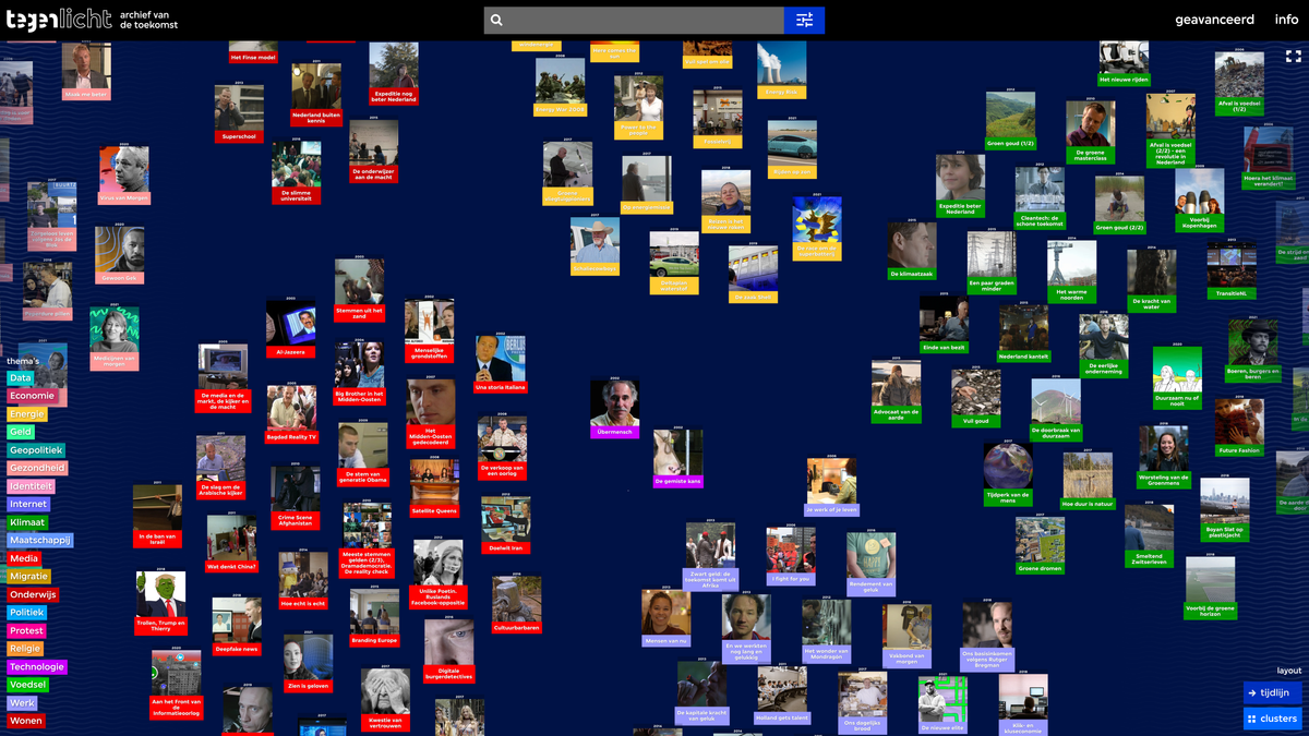 VPRO Tegenlicht en VPRO Medialab presenteren: 555 Tegenlicht-uitzendingen van de afgelopen twintig jaar omgezet in een dataset, het 'archief van de toekomst'.
