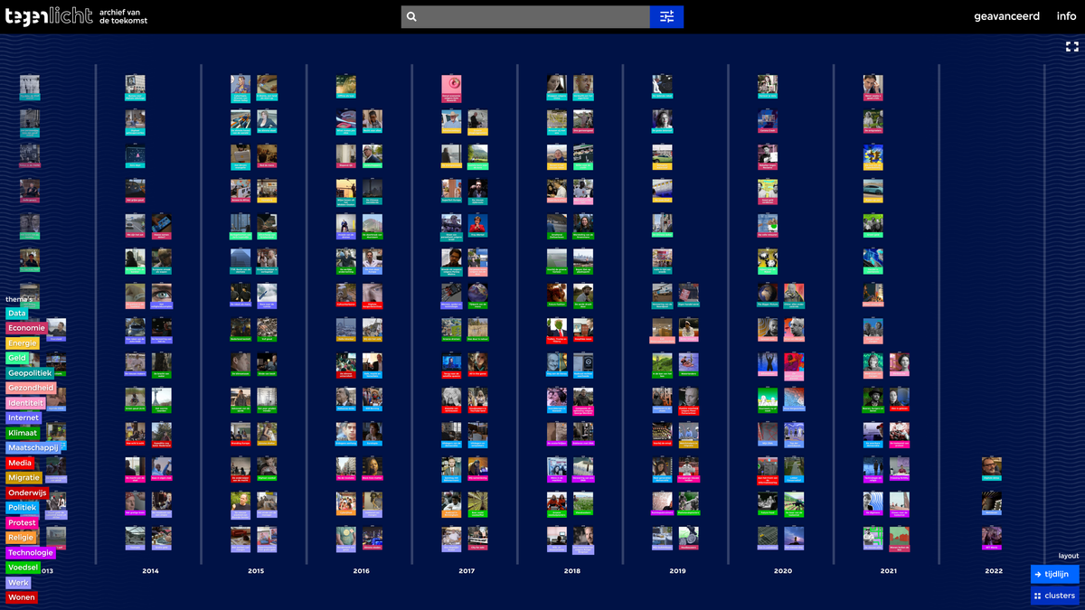 Samen met ontwerpbureau Sudox en het Nederlands Instituut voor Beeld en Geluid ontwikkelden VPRO Tegenlicht en VPRO Medialab het ‘archief van de toekomst’. Het online archief gebruikt kunstmatige intelligentie en machine learning om alle 555 uitzendingen op nieuwe manieren beschikbaar en doorzoekbaar te maken. Met gebruik van algoritmes voor beeld- en persoonsherkenning en spraak- en tekstanalyse zijn alle uitzendingen gemaakt in de periode 2002-2022 omgezet in een dataset. Daarin kunnen gebruikers zelf zoeken naar specifieke fragmenten, citaten en zelfs losse shots.