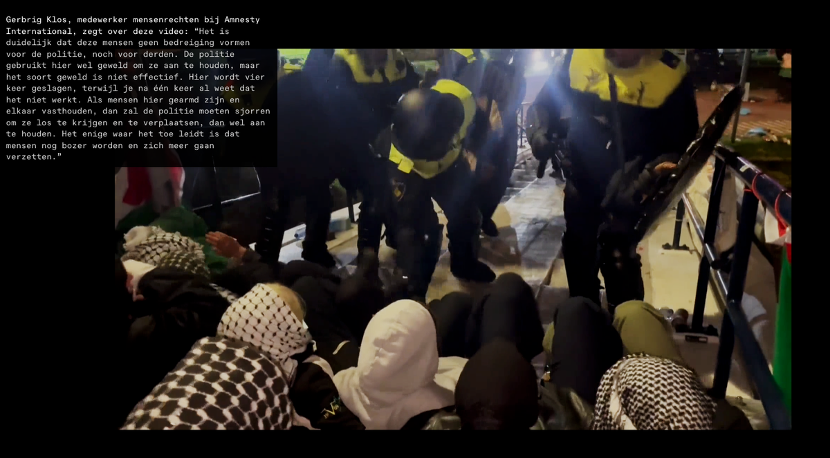 De driehoek van Amsterdam (burgemeester, hoofdofficier van justitie en korpschef van de politie) gaat over tot ontruiming omdat de protesten niet vreedzaam zouden zijn. Daarnaast zou de veiligheid van deelnemers en omwonenden niet gegarandeerd kunnen worden omdat er barricades zijn opgetrokken. Beelden van de ontruimingen worden veel gedeeld door demonstrerende studenten en sympathisanten. Zij vinden dat er sprake is van buitenproportioneel politiegeweld.