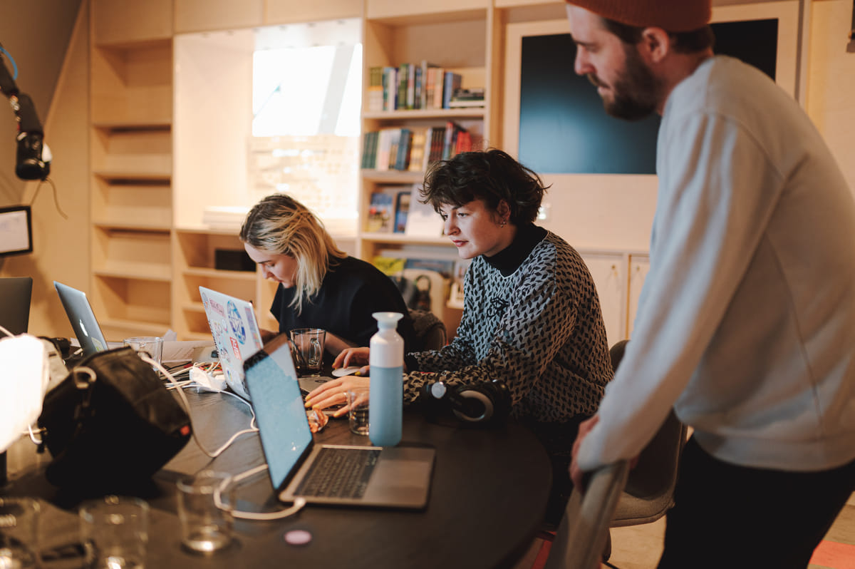 Dit team bouwde hun concept rond het principe van input/output: de basis van alle AI-software. De output werd als het ware gerecycled, waardoor output opnieuw als input werd gebruikt. De jury was gecharmeerd van de keuze om de cyclus te beginnen met- en uiteindelijk terug te vertalen naar een tekening. Er werd o.a. gebruik gemaakt van technieken als Face-swap en GAN Style Transfer.