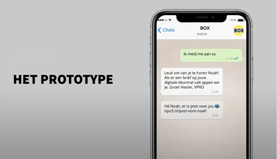 Hester Knieriem, Tjebbe Venema, Maartje van Beuningen en Kyllian Lockefeer wonnen de hackathon met team Augmented Duck. Ze introduceerden een augmented reality nieuwsbrief, genaamd BOX. BOX richt zich op middelbare scholieren. In de AR-wereld van BOX kunnen middelbare scholieren, in hun eigen veilige omgeving, op een vernieuwende manier meer te weten komen over voor hen relevante onderwerpen zoals seksualiteit, geld of klimaat. De kunnen ook reacties achterlaten in AR. Deze vorm van storytelling trekt je uit je inbox en voegt een extra laag toe aan hun vertrouwde omgeving. Hierdoor voelen ze zichzelf zeker genoeg om persoonlijke problematiek te bespreken.