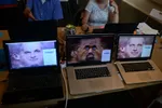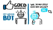 Erg veel indruk maakt de NOS-bot, die stukjes uit het journaal aan elkaar plakt, waardoor een hilarische montage ontstaat. De hele zaal moet lachen en de programmeurs achter mij zuchten bewonderend als ze de gebruikte code op het scherm zien. ‘Deze gaan we niet meer winnen,’ fluistert Guido in mijn oor. Onze presentatie gaat echter niet slecht, wij zijn de enige die de jury met de bot kan laten spelen en ook de anderen in de zaal gaan meteen aan de slag met onze AanBot.