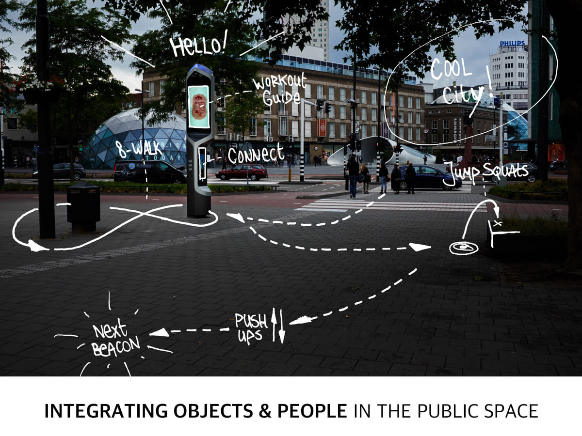 Team ONE richtte zich op personification & gamification van de Citybeacons. Door de Citybeacons een persoonlijkheid te geven, kunnen ze de community verbinden en activeren. Vanuit deze gedachte kan de Citybeacon dienen als een soort persoonlijke gids die de mensen in de stad vanuit verschillende thema’s kan bedienen. Eén daarvan is urban sports. Bij dit thema integreert de Citybeacon objecten en mensen in openbare ruimte. Op de Citybeacon zien de bezoekers van het stadscentrum sportoefeningen die ze zelf na kunnen doen. Zo kan de Citybeacon een bijdrage leveren aan de stedelijke gezondheid en verandert Eindhoven in een interactieve playground.