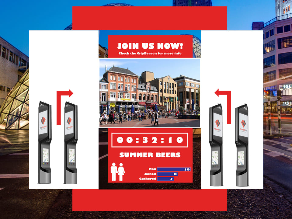 Inspelend op de toename aan individualisme en gebrek aan een lokale evenementenhub, wil het team van Gather & Go de binnenstad door middel van de Citybeacons transformeren tot een levendige, sociale omgeving. Onder het motto ‘experience your city together’ is de citybeacon een sociaal platform voor crowdsourced en community-driven lokale projecten en evenementen in de binnenstad. De uitgangspunten zijn eigenaarschap van de events, het creëren van een community en inwonersparticipatie. Iedereen kan via de bijbehorende app een evenement of project aanmaken en op een speelse manier de stad verkennen en (open bare) ruimte gebruiken. Let’s Gather & Go!