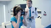 Hoe zorg je dan dat de kijker het verhaal makkelijk kan volgen? Steye: ‘Door de mise-en-scène heel duidelijk te maken. Mijn theorie is dat je eigenlijk maar twee gesprekken tegelijkertijd kan bijbenen in VR. Daarom heb ik gezorgd dat er altijd twee groepjes acteurs zijn zodat de kijker zelf de film kan monteren door zijn hoofd heen en weer te bewegen.’ In de film is dat ook te zien aan de acteurs. Wanneer Reibek binnen komt lopen roept Bram meteen: ‘Ah Reibek, leuk dat je ook even langskomt.’ Bram wijst en kijkt in de richting van Reibek waardoor je meteen weet waar je moet kijken.