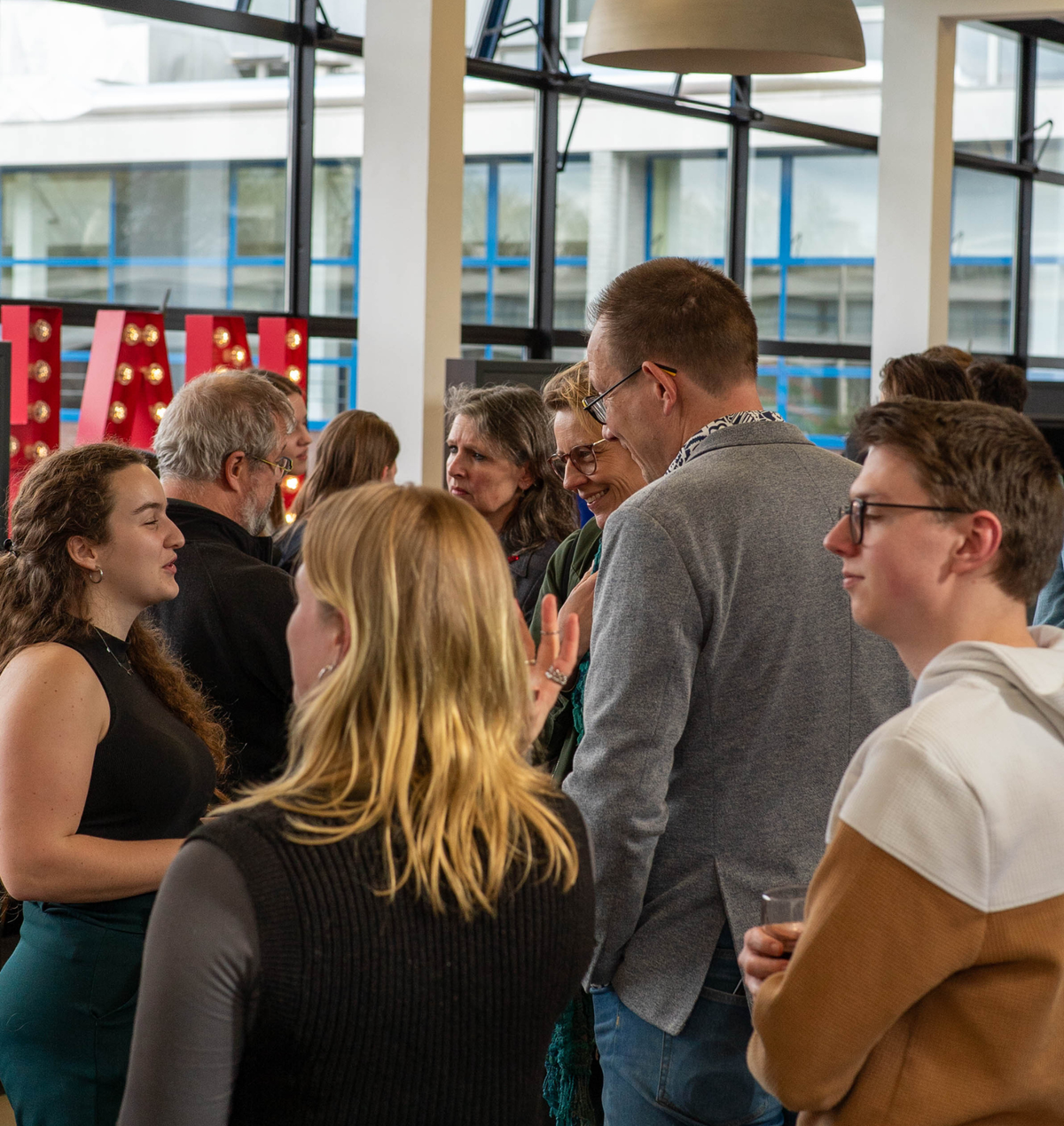 Na de open demo’s waarbij de teams zijn overspoeld door een daverend applaus en complimenten over hun fantastische pitches, sloot Publieke pioniers #4 af met een levendige borrel. Deelnemers, juryleden en het publiek bespreken enthousiast hun ervaringen tijdens de afsluitende borrel van de tweedaagse hackathon in de HAN. De sfeer bruist bij iedereen nog na, hopen dat de basis voor toekomstige samenwerkingen kan worden gelegd.