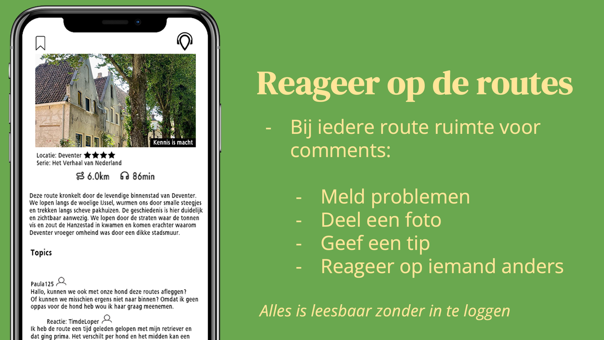 De Podwalks van de NTR, locatie gebaseerde podcast met historische verhalen terwijl je wandelt, werden met de serie Het Verhaal van Nederland een groot succes en kregen een vervolg met de serie Het water komt. Die populariteit heeft als gevolg dat de roep om meer groot is, Podwalkers graag ook hun enthousiasme willen delen, en zelfs willen bijdragen aan routes en nieuwe wandelingen. Er groeit dus een actieve community rond de Podwalks, die de potentie heeft om online uit te groeien mits daarvoor een passende omgeving voor wordt ingericht: een publieke hub voor de podwalks ligt voor de hand. Het team NTR, Luc Willems, Stijn Wijngaard, Derk Molijn en Naomi Sinot, werkten dit uit tot en sterk concept. Ook hier bleek met hulp van de PubHubs developers een eerste, werkend prototype al realiseerbaar. Daarmee is de eerste stap gezet in de transitie van een statische website naar een actieve hub...