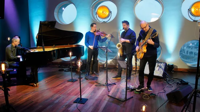 Vier avontuurlijke improvisatoren vormen een onconventioneel jazzkwartet: gitaar, altviool, saxofoon, piano!