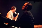 De motor is al aangezet, het dendert lekker door als ik de zaal in kom waar Gideon van Gelder op piano speelt met Joris Roelofs op basklarinet, Stefan Lievestro op bas en Jamie Peet op drums. Verrassend element is Fridolijn van Poll met haar serene, zuivere stem. Ze spelen de nummers van Gideon's album 'Lighthouse'.