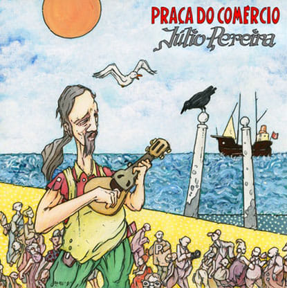 Het liefst staat Júlio Pereira met zijn grijze wapperende haren en zijn geliefde cavaquinho (4-snarig gitaartje) op de foto, maar op zijn nieuwste album Praça do Comércio met tekeningen van Carlos Zingaro ziet-ie er een beetje Catweazle-achtig uit. Past eigenlijk veel beter. De Portugese Júlio Pereira zit al heel lang in het vak. Hij begon in de jaren zeventig bij progrock-bands als Petrus Castrus en Xarhanga. Toevallig kwam hij in aanraking met Portugese folklore en begon cavaquinho te spelen met Zeca Afonso, een invloedrijke protestzanger. Julio merkte dat zijn spel op de cavanquinho ook in het buitenland goed werd ontvangen. Na het uitbrengen van de LP Cavaquinho (1981) heeft hij het instrument niet meer losgelaten. Júlio heeft door zijn virtuoze spel en eigen composities bijgedragen aan de emancipatie van het gitaartje. In de tijd dat Portugal nog een handelsnatie was heeft het instrument sporen achtergelaten in landen als Brazilië en Kaapverdië, dus verdient het een serieuze plek in het huidige muzikale landschap. Zijn nieuwste album, de 31ste, heeft een rijk geïllustreerd boekje. Elke track heeft een eigen, grappige tekening, de geschiedenis van de cavaquinho en de braguinha (4-snarig gitaartje uit Madeira) wordt munitieus uit de doeken gedaan, en staan de nummers in notenschrift en tabulatuur afgedrukt. Leuk voor de huidige en toekomstige generatie cavaquinho-spelers. De muziek is een soort van progressieve folk waarbij een reis wordt gemaakt naar verschillende plekken in de wereld. Behalve op cavaquinho en braguinho bespeelt Júlio de Griekse bouzouki en synthesizers. Daarnaast hoor je de cello, percussie, gitaar, bas en een koortje. Lekker plaatje dat heel af en toe over de top neigt te gaan.