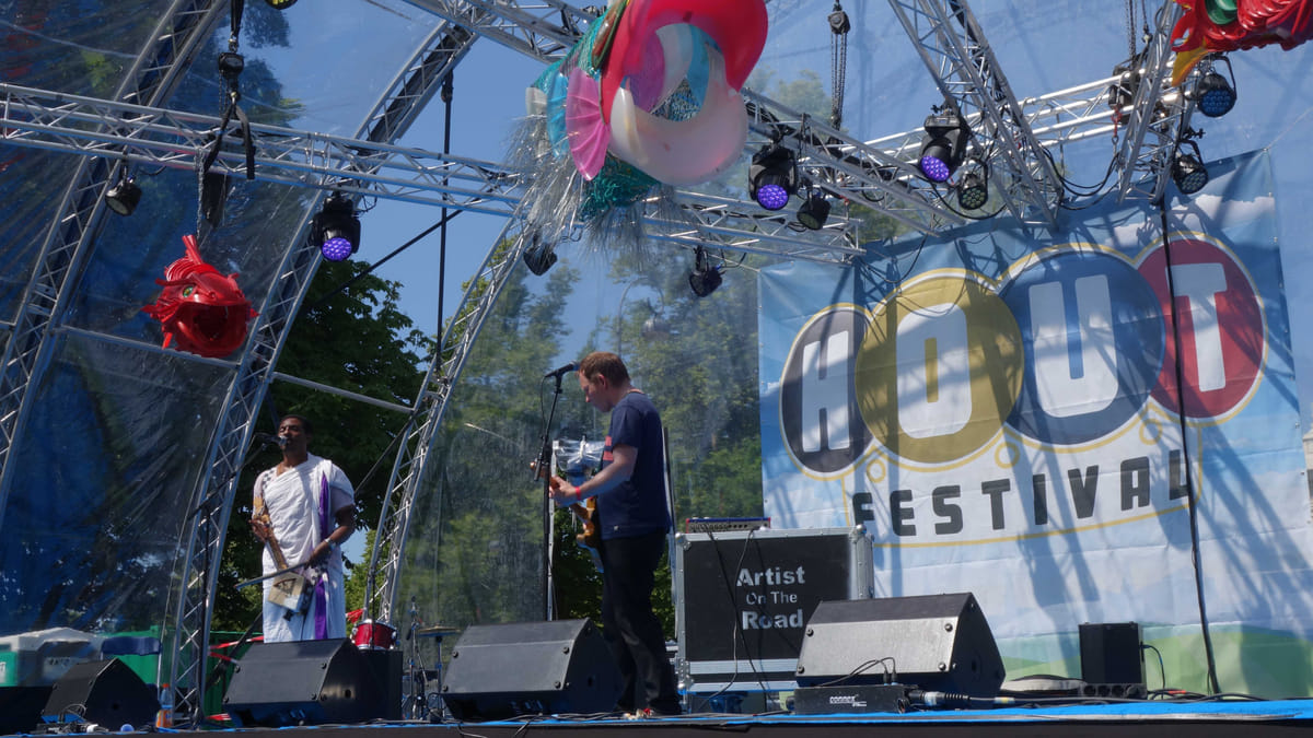 Het Houtfestival is een evenement dat plaatsvindt op de derde zondag van juni. Op een zonovergoten dag heeft Haarlem en omstreken op 18 juni jl. kunnen genieten van grenzeloze, soms gruizige geluiden en aangrijpende verhalen. Vooral de ukkies hebben weer hun jaarlijkse portie wereldvitaminen binnengekregen door allerlei activiteiten. Voor de grote mensen waren er naast Afework Nigussie & Zea (zie foto) optredens van onder meer de Nederlandse band Rubatong en Nahawa Doumbia uit Mali. Ik heb gesproken met twee artiesten: de Syrische Majed Saraydeen - voordat hij naar Nederland vluchtte, leidde deze hij een Taarab-orkest van maar liefst 70 man, - en de Iraanse zangeres Mahsa Vahda die in haar thuisland alleen voor vrouwen mag optreden.