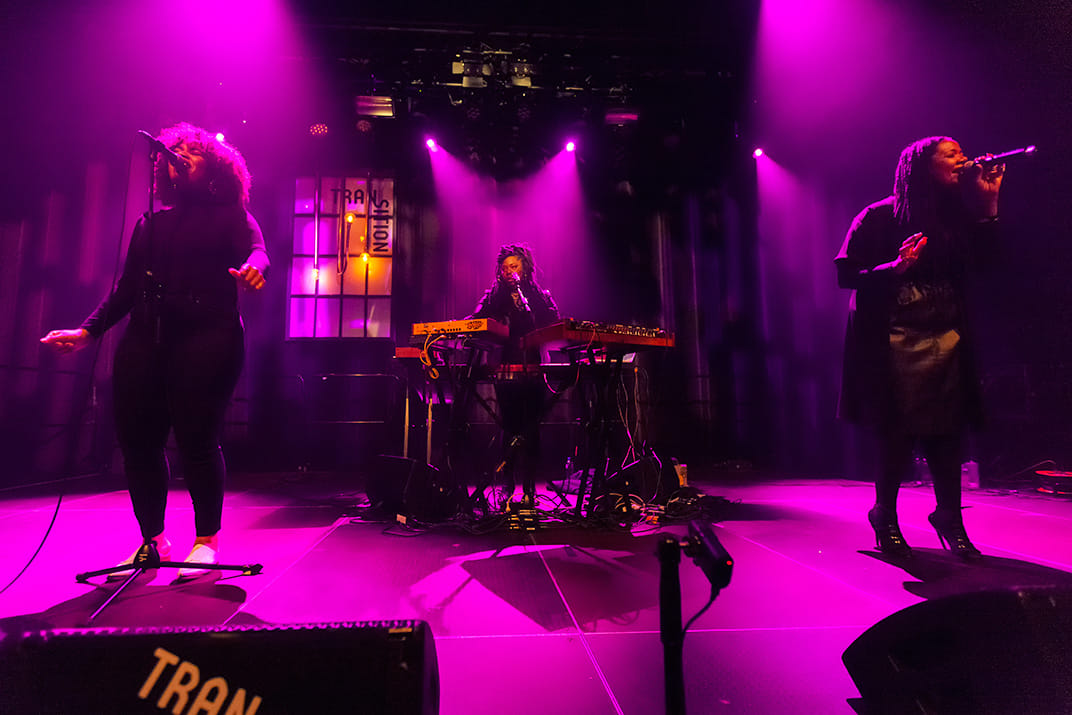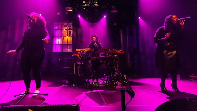 Het beeld op het podium is als volgt: op de achterste rij staat Paris Strother, met een laptop en keyboards. Hierbij komen de beats en de bassen uit het doosje, en speelt Paris live haar toetspartijen. Soms zingt ze mee. Vooraan staan de twee zangeressen Amber Stother en Anita Bias die uitblinken in zorgenloze vocalen en oohs, yea-yeahs en soortgelijke ad-libs.