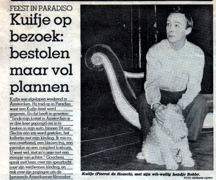 Kuifje heet eigenlijk Pierrot de Heusch en komt uit Brussel. Zijn beroep is regie-assistent. Het verhaal van de diefstal is echt gebeurd. Pierrot speelt niet zo vaak voor Kuifje. ‘Ik wil er geen circus van maken', zegt hij. 'Eigenlijk de enige keer dat ik hem heb uitgebeeld was voor het maken van een videotape die ik naar Steven Spielberg in Amerika stuurde. Ik heb hem aangeboden om Kuifje te spelen in zijn nieuwe speelfilm. Spielberg heeft alle rechten van de Kuifje-stripboeken gekocht. Op dit moment werkt hij aan een film, al wordt dat strikt geheim gehouden.' Uiteindelijk is Pierrot niet de acteur geworden in de film Tintin and the Secret of the Unicorn (Spielberg 2011).