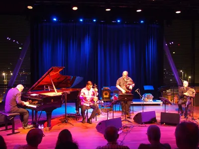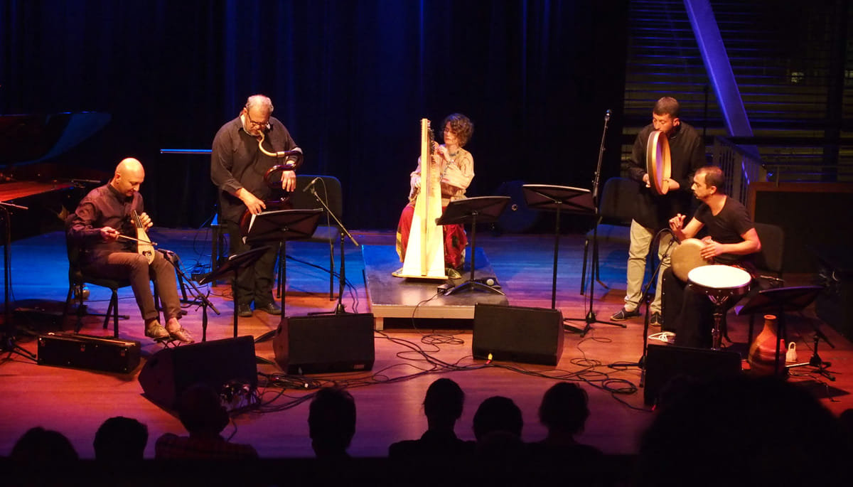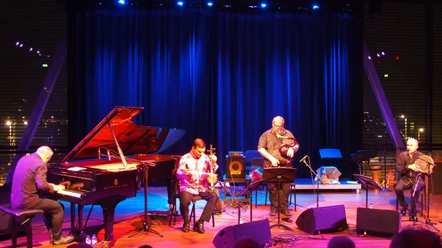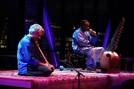 Diabaté nodigt ons uit om hen te vergezellen op reis, “Fasten your seatbelts”. En zoals een vliegtuig eerst op gang moet komen, beginnen ze zacht en traag, totdat er een lekkere cadans in komt te zitten. Ze houden zich vast aan simpele thema’s en nemen ze om beurten het woord, of imiteren elkaar en reageren op elkaar. Het resultaat is een bijna meditatieve stroom van klanken, waarbij de karakteristieke speelstijl van beide intact is gehouden. Prachtig kermende uithalen van Kalhor die onder je huid kruipt als hij hoog op de hals strijkt en sprankelijke kora-loopjes van Diabaté. Tussen de snaren door citeert Diabaté Gershwin's “Summertime”, ongetwijfeld vanwege de ongebruikelijk warme septembermaand. Kalhor heeft zich van zijn meest swingende kant laten zien door zijn vedel als percussie-instrument te bespelen. Het optreden beslaat één set, iets meer dan een uur. Hoewel het publiek meteen naar boven schoot om een staande ovatie te geven, bleef de toegift terecht uit, als ware het een klassiek concert. Bravo!