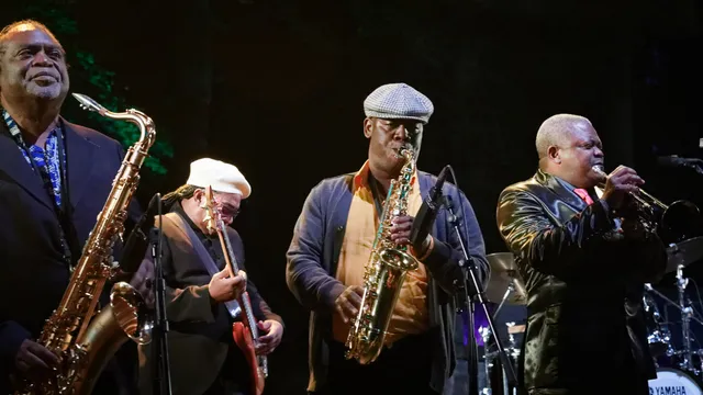 Bij de bar mag sprake zijn van Dutch Disease (het beruchte door de muziek heenlullen), maar hier is dat nauwelijks een probleem - het gaat veel meer om voelen dan om luisteren, veel meer om sfeer en samen feest vieren dan om indrukwekkende instrumentale prestaties. De blazers zetten hun schetterende accenten zonder uitzondering direct aansprekend en herkenbaar unisono neer, de zangeressen in hun schitterende showjurken bewegen loom maar overtuigend op de maat van de eindeloos herhaalde ritmische patronen: de nummers gaan niet vooruit maar staan ook niet stil, het is de oneindige rondedans die een soort trance opwekt - niet een trance waarin de geest langzaam opstijgt, maar een waarin het lichaam geleidelijk op de aarde landt en thuiskomt.