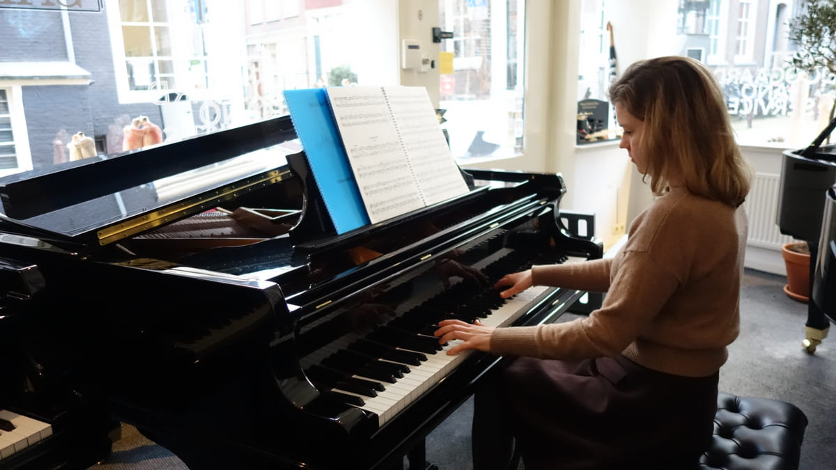 In het Spiegelkwartier, in hartje Amsterdam, komen pianoklanken ons tegemoet. Door de ruiten van pianowinkel Bart Boogaard Piano Services, waar Helena Basilova de middag dat we haar spreken op past, zien we de pianiste spelen op een van de vleugels. Op de lessenaar staat een partituur met werk van haar vader.