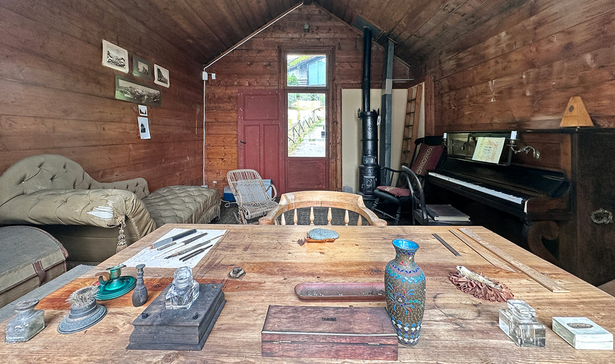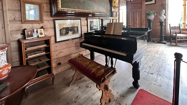 Het lijkt alsof de tijd heeft stilgestaan. Ook in de villa waar middenin de woonkamer nog altijd zijn Steinway staat. Dat alles dankzij zijn vrouw (zelf begenadigd zangeres en directe nicht van Grieg) Nina Hagerup (1845 – 1935), die ervoor zorgde dat er zoveel bewaard is gebleven van Grieg.