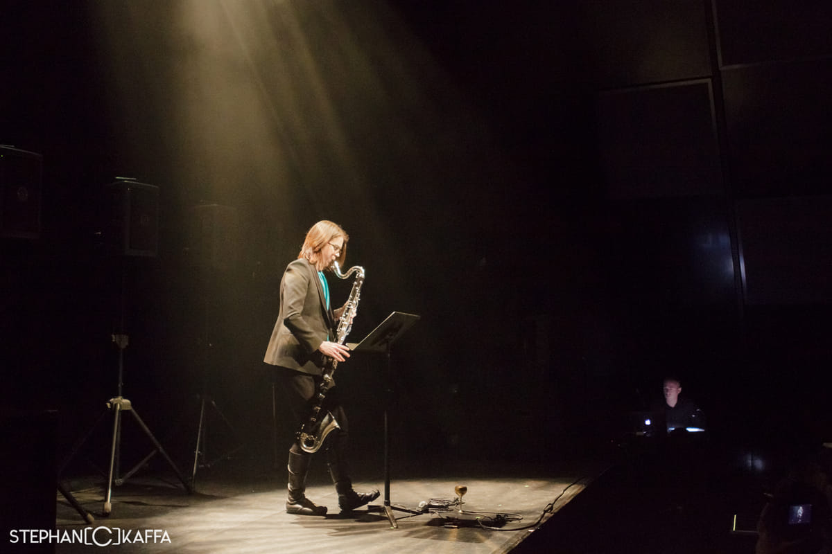 Voordat het concert met muziek van de Canadees Pierre Alexandre Tremblay begint is het in het kleine zaaltje van Prins27 nagenoeg uitgestorven, maar binnen een minuut nadat basklarinettiste Heather Roche de eerste noten heeft geblazen stroomt het festivalpubliek binnen. De meesten blijven geïntrigeerd zitten, sommigen gaan na verloop van tijd op zoek naar een andere act. Dit is festivalpubliek: gewoon naar binnen lopen en kijken en luisteren of het je bevalt. En zo kom je vanzelf de leukste verrassingen tegen. Want Tremblay is, buiten een kleine groep van hardcore liefhebbers, niet bijzonder beroemd in Nederland. Hij heeft zijn concert in drie delen opgebouwd: aan het begin werk voor basklarinet en elektronica, daarna speelt hij zelf een solo op de zessnarige fretloze basgitaar (natuurlijk ook weer met elektronica), en tenslotte treedt sopraan Peyee Chen op terwijl de componist achter de laptop zit.