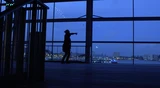Tweehonderd zangers verspreid door de Entreehal en de Foyerdecks van het Muziekgebouw aan 't IJ in Amsterdam...