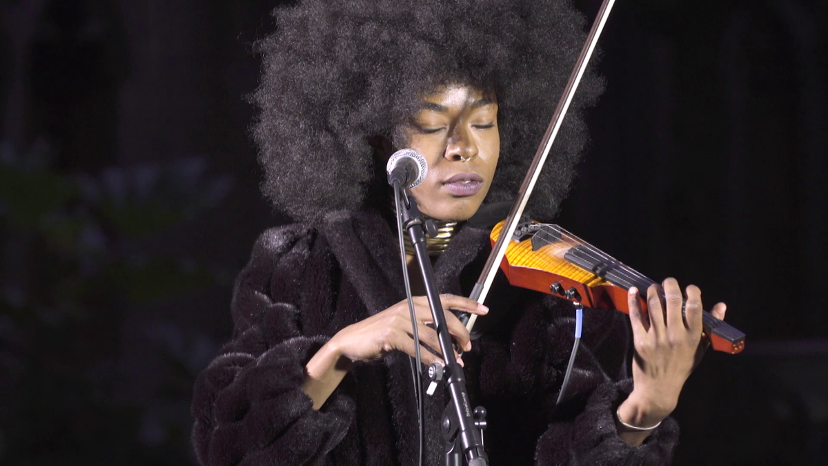 Sudan Archives (Cincinatti, Ohio) leerde zichzelf viool spelen. Met behulp van elektronica vult ze haar pakkende liedjes aan met harmonieën, effecten en beats. Sudan Archives speelde op het festival Le Guess Who?, en vooraf speelde ze voor Vrije Geluiden een sessie in de Pandhof naast de Utrechtse Domkerk.