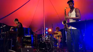 Het leken zulke bedeesde intellectuele jongens, toen toetsenist Dan Leavers, drummer Maxwell Hallett en saxofonist Shabaka Hutchings werden geinterviewd door Melchior voor Vrije Geluiden op TV. Eenmaal op het podium transformeerden de Britten in Danalogue the Conquerer, Betamax Killer en King Shabaka. Namen die overeenstemmen met de apocalyptische sfeer van de muziek en de bandnaam The Comet is Coming. Volgens het programmaboekje van into The Great Wide Open kun je maar het beste dansend ten onder gaan als de komeet ons planeetje verwoest. En dansen dat deed het publiek wellustig, uitgedaagd door de jongens die zelf ook wild bewogen. Als Shabaka en The Conqueror hurkend verder speelden, ging het hele publiek hurken. Een paar minuten lang was een gelijkademend, dampend en pulserend organisme te zien dat nadat het in de lucht sprong weer uiteen viel in verschillende individuen. Een soort omgekeerde big bang in de volgende melkweg. De futuristische klanken die chaos suggereren doen denken aan Sun Ra. Het zou ontoegankelijke muziek moeten zijn door de scherpe saxsolo's, stevige afro-ritmes, faseverschuivingen en electronics uit een spaceflipperkast, maar de dansende meute bewijst het tegendeel. Machtig mooi concert.