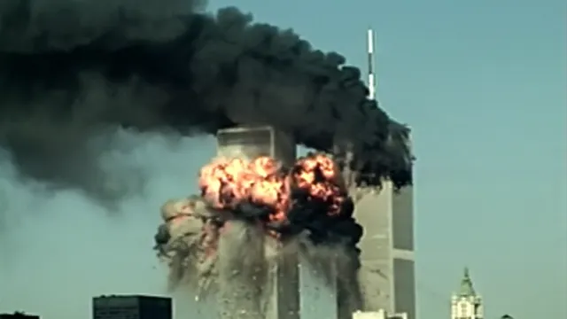 In dit fragment is te zien hoe twee passagiersvliegtuigen in het World Trade Center in New York vliegen. Om 9.59 stort de eerste toren, de South Tower, in, de North Tower volgt een halfuur later.