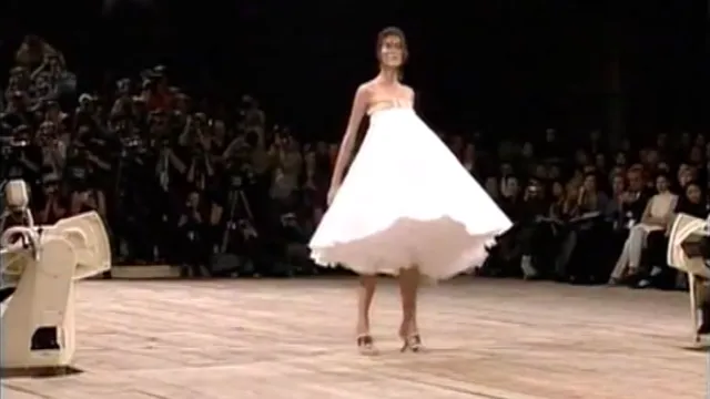 In deze show van Alexander McQueen uit het voorjaar van 1999 wordt de jurk No.13 gepresenteerd. Twee robots verven de jurk met spuitverf. Het model is Shalom Harlow.
