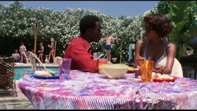 In het fragment zien we Eddie in betere tijden. Hij zit aan het zwembad op een feest van regisseur Jack Horner en zijn leven ziet er positief uit.
