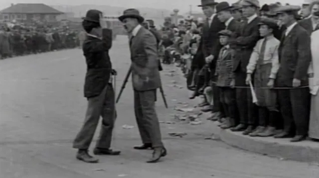 In het fragment is Chaplins Tramp te zien op een racecircuit waar op dat moment een wedstrijd wordt gehouden met kartwagens. De filmploeg die opnames probeert te maken van de race wordt consequent lastiggevallen door Chaplin die iedere beweging van de camera volgt. Hij blokkeert, tot grote frustratie van de cameraman en de regisseur, alsmaar weer het zicht op de voorbijrazende wagens.