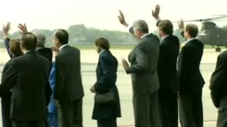 Wim en Rita Kok zwaaien de Clintons uit op Schiphol.