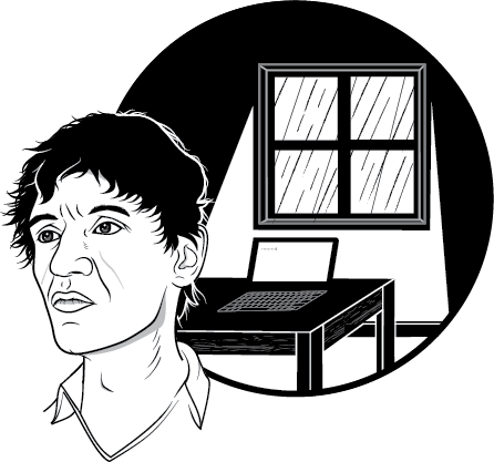 ‘We werken vaak aan hetzelfde bureau, we zitten dan schuin tegenover elkaar. Ik ben zijn cipier, zegt hij wel eens, mijn ogen dwingen. Anders doe ik niks, zegt hij. Hoewel dat niet waar is, want ik ben vaak weg, voor een interview, of om mijn kinderen op te halen van school, en dan werkt hij altijd goed.