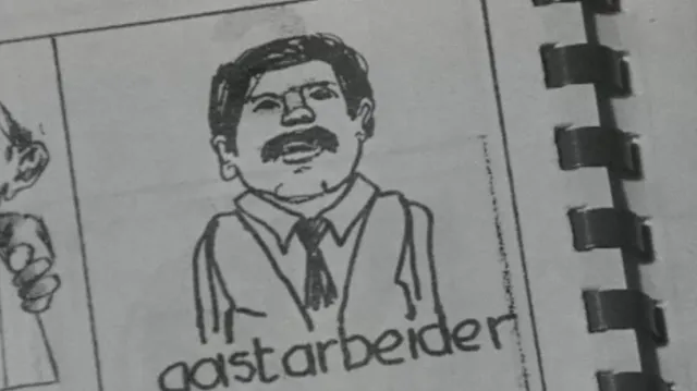 In dit fragment zijn migranten te zien die Nederlands leren met een abc-cursusboekje van Nelly Soetens. Zij oefenen woordjes, sjoelen en spelen kaart.