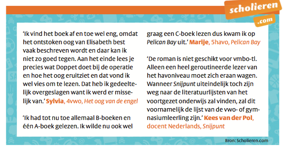 ‘Haar mooiste boek is volgens mij Snijpunt, dat tegelijkertijd ook haar meest onderschatte roman is. Criticasters vielen over haar heen omdat ze (in de eerste hoofdstukken) te gewild zou hebben aangeschurkt tegen modieuze thema’s als geweld in de klas; wat ze misten was een geweldig op-zoek-naar-een-schrijverboek in de traditie van Roberto Bolano. Joost de Vries zou een paar jaar later met een zeer verwant boek (Clausewitz) veel meer sympathie oogsten. Omdat hij jong was, nieuw, een man?’