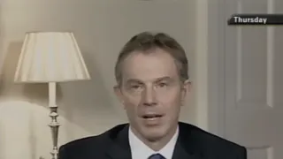 Tony Blair was van 1997 tot 2007 premier van het Verenigd Koninkrijk voor Labour. Op 20 maart sprak hij via de televisie het land toe, om het Britse volk te vertellen dat ze die nacht waren begonnen met de bombardementen op Bagdad.