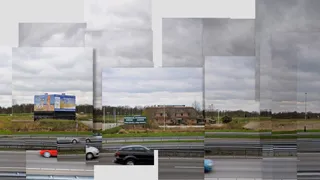 Adriaan Geuze maakte dit beeld zelf door om de 20 meter een foto te maken van de snelweg bij Leiderdorp. Daarmee wil Geuze laten zien hoe het landschap rond de steden verrommelt.