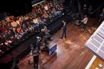 Arjen telt of iedereen in het publiek aanwezig is.© David Cenzer